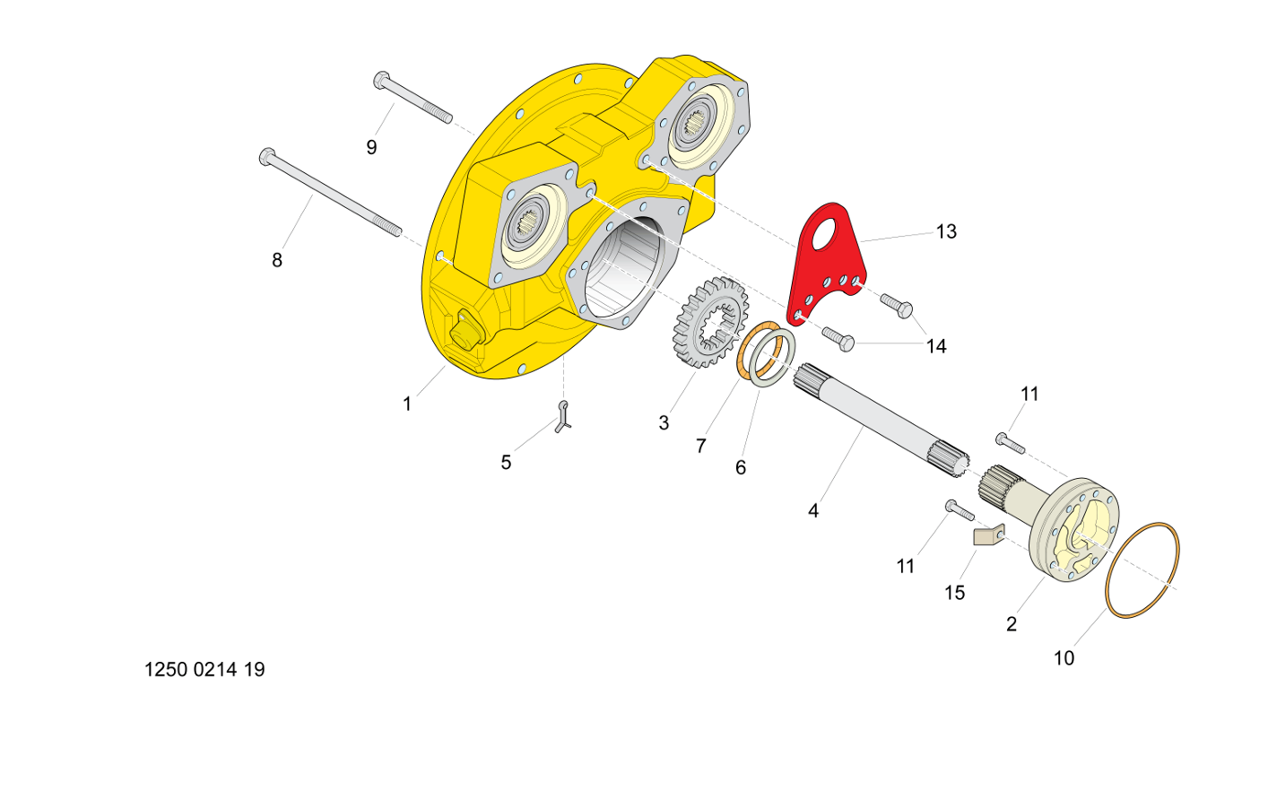 COMPLETE _ASSEMBLY 5580015127 COVER 1 FRONT COVER GROUP 1-COVER 1 FRONT COVER ASSEMBLY 2 5541489700 SUPPORT 1 TUBE-SUPPORT 3 5540982100 GEAR 1 4 5540982400 SHAFT 1 5 5580016789 PIN 1 COTTER PIN 6 5541400200 BEARING PART 1 RACE-THRUST 7 5541400000 BEARING 1 8 5542010400 CAPSCREW 4 9 5541725800 CAPSCREW 3 10 2650717743 O'RING 1 11 5580015155 CAPSCREW 7 13 5540984300 HANGER 1 HANGER-LIFT 14 5540163400 SCREW, HEX HEAD 2 A M12 20 H 7,5 18 10.9 15 5540985000 EXHAUST DEFLECT 1 DEFLECTOR