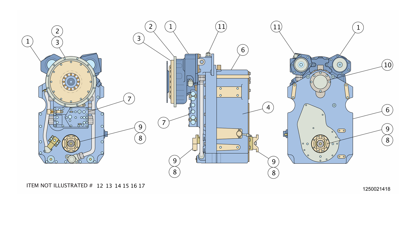 項(xiàng)目零件號名稱數(shù)量備注再制造件號L COMPLETE _ASSEMBLY 5580005914 TRANSMISSION 1 FUNKDF150 1300AAA CANBUS 6060070314 1 5580015127 COVER 1 FRONT COVER GROUP 2 5541389000 MOUNT 1 MIDSHIP MOUNT GROUP 3 5541389100 CONVERTER 1 CONVERTER ASSEMBLY 4-GEAR 1 GEAR RATIO GROUP 6 5541389800 OUTPUT GROUP 1 OUTPUT GROUP 7 5541725700 CASE 1 MAIN CASE GROUP 8-PRESSURE RELIEF VALVE 1 VALVE CONTROL GROUP 9-YOKE 1 YOKE GROUP 10-YOKE 1 YOKE GROUP 11-COVER 1 1ST STAGE COVER GROUP 12 5580007702 PUMP 1 CHARGE PUMP GROUP, NOT SHOWN 13 5541727300 COVER 1 HDW COVER GROUP, NOT SHOWN 14 5580015128 ADAPTER 1 PUMP ADAPTER GROUP, NOT SHOWN 15-WIRING 1 WIRING AND GEAR SEL GROUP,NOT SHOWN 16 5580015129 CONTROL 1 CONTROL MODULE, NOT SHOWN 17 5541489500 FILTER 1 FILTER ASSEMBLY, NOT SHOWN